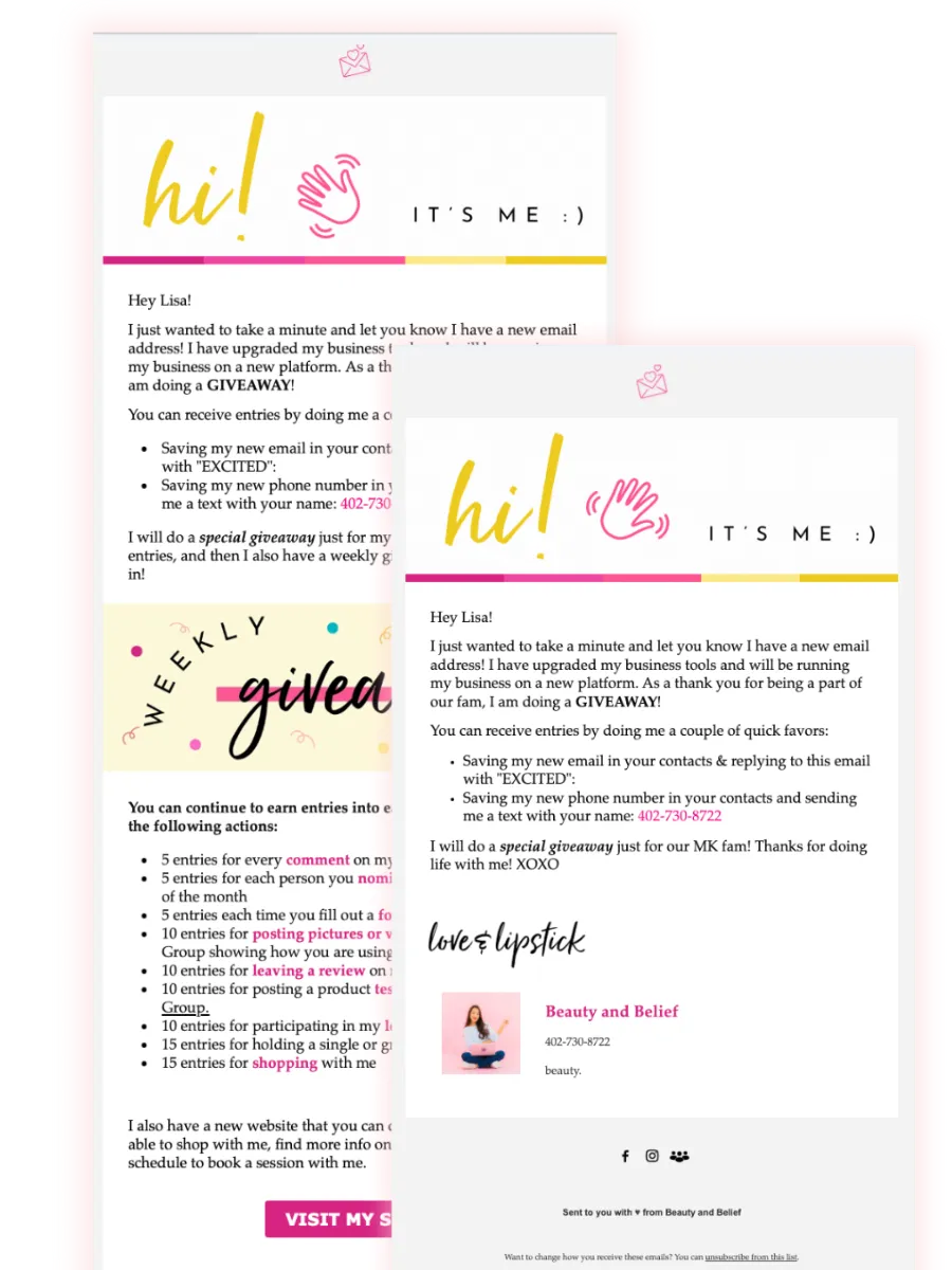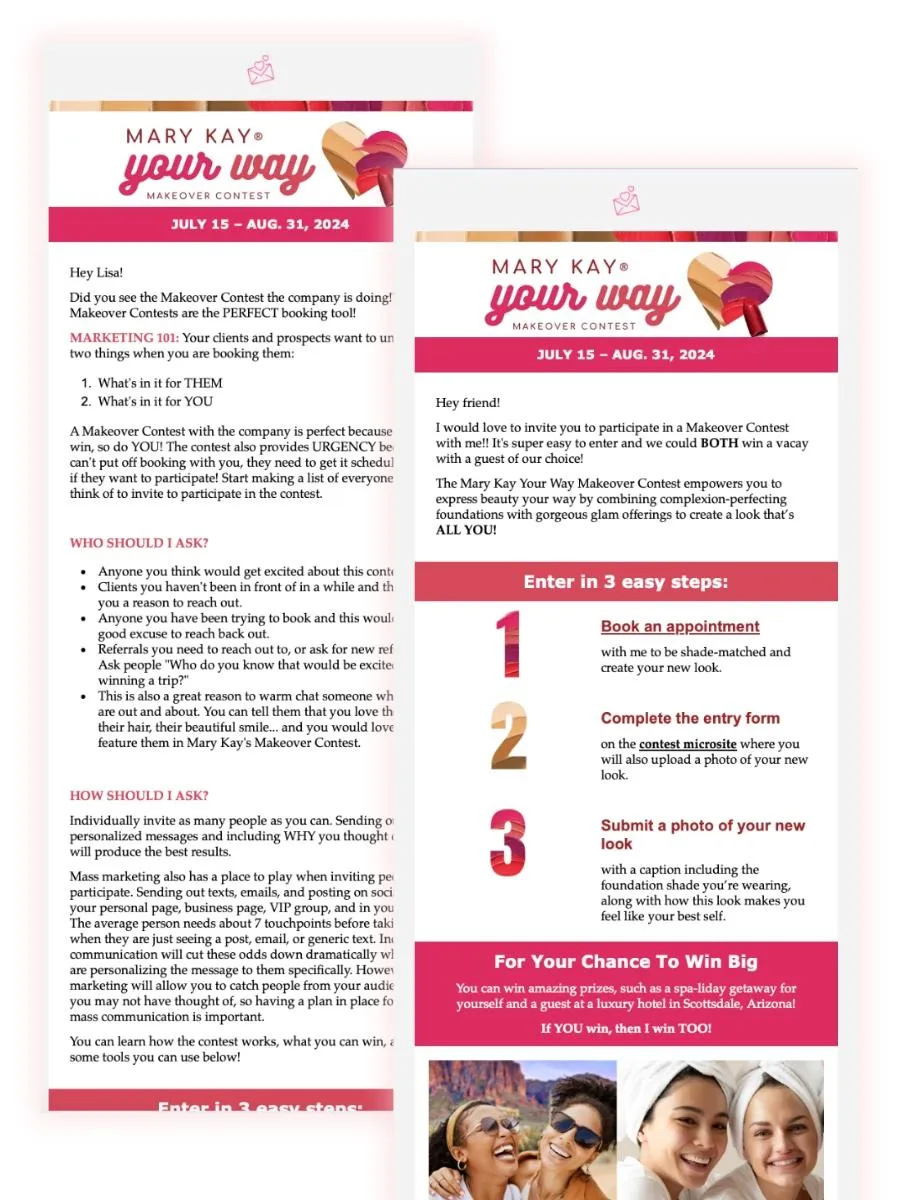 We have created email templates for you for the Makeover Contest! There is a template you can send out to your clients and one you can send out to your Consultants. Feel free to edit them before sending them if you would like! We also trained on the Makeover Contest Tools in our Graphics Gallery Support Session this month if you would like to watch the replay.