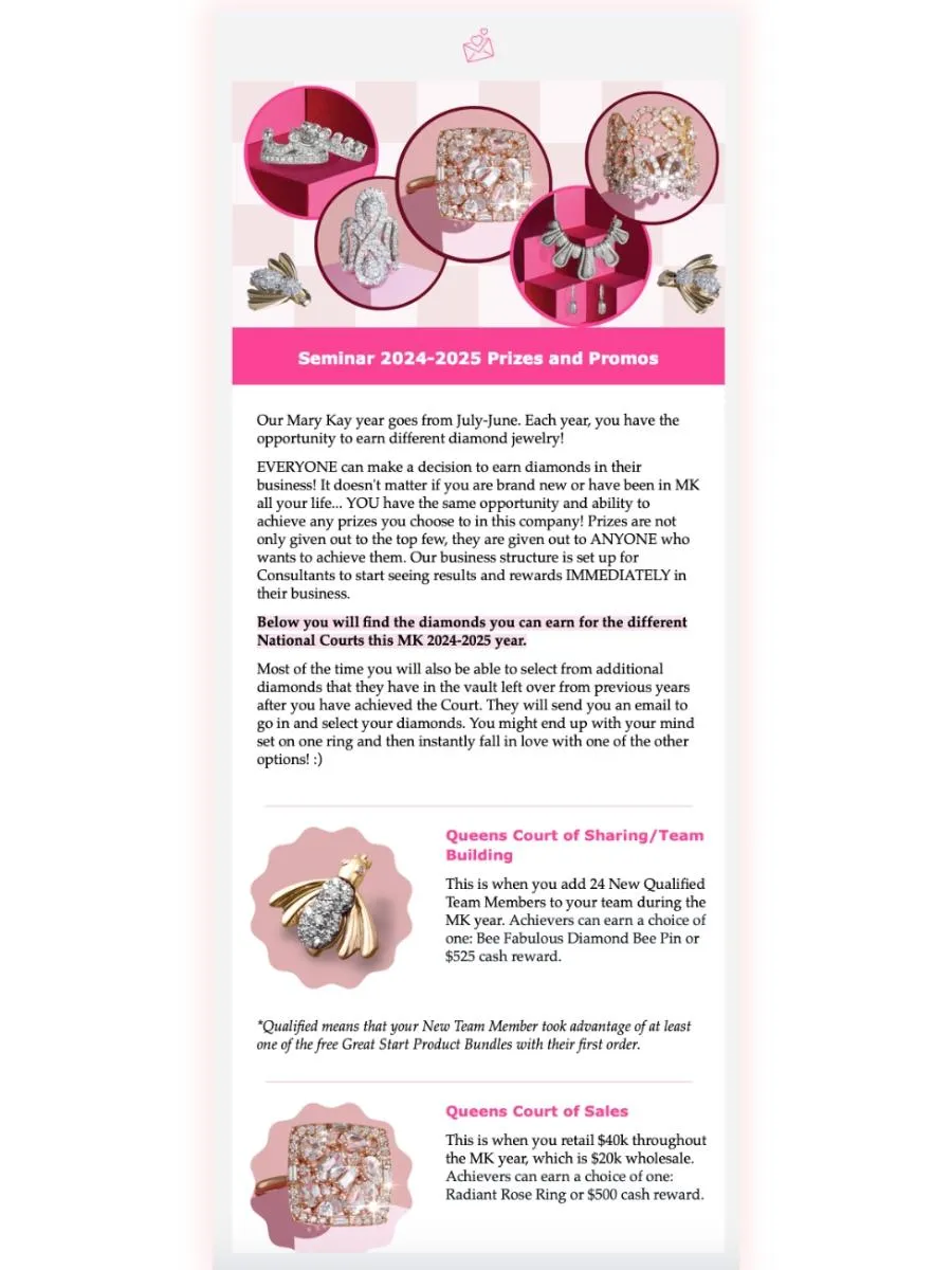 This template can be used to show your Consultants all of the prizes for this Seminar year! You also have space to add your own prizes you or your National Area might be running this year in addition to the company's prizes.